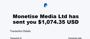 Just received my payment from Monetise. Good offer and fast payment. Thank you so much.