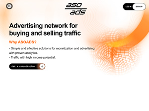 AsoAds is an advertising network for purchasing premium traffic based on CPC/CPM models with high conversion rates and strict quality control. The platform provides access to stable volumes and a wide pool of sources in over 200 countries.