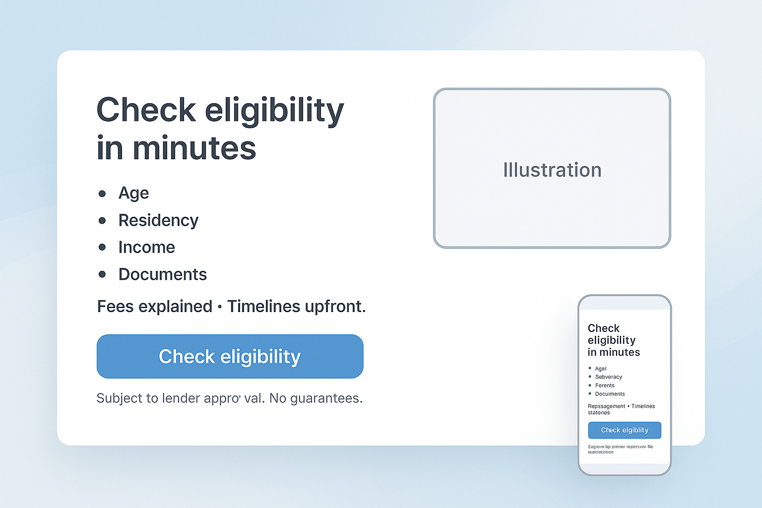 Pre-qualification: add age/residency/income bullets on the pre-lander; clarify fees/timelines.