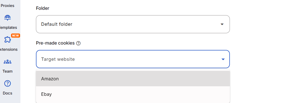 Warm up profiles with cookies: Use the Pre-farmed cookies feature to simulate browsing activity automatically. This builds cookies and makes profiles appear "aged" or more trustworthy before logging into accounts.