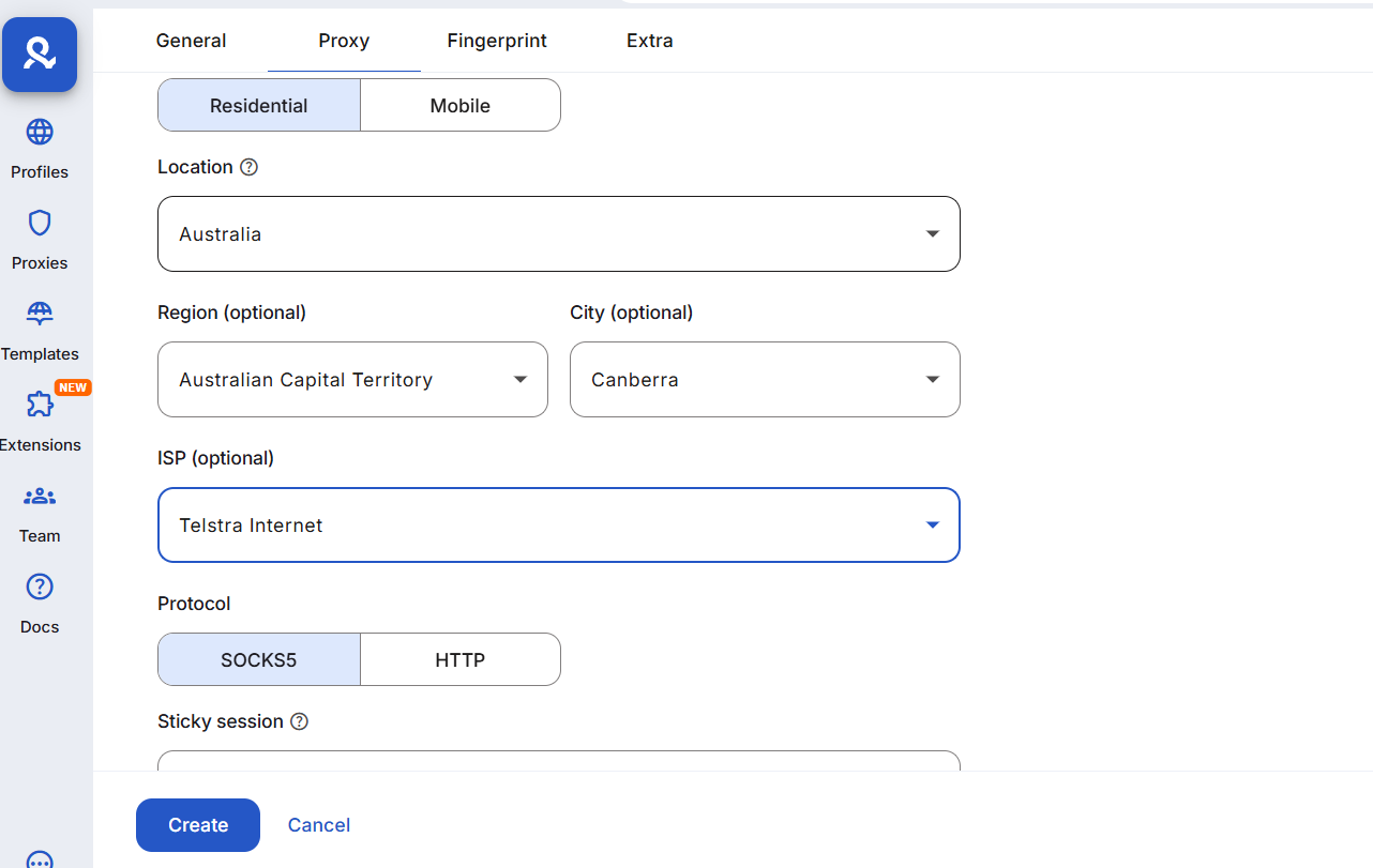 Multilogin bundles proxies directly into the platform, so you don't need to manage a separate vendor. You get access to 30 million IPs across 150 countries. Sticky sessions and mobile proxies are available for specific use cases, and you can adjust the ISP of your proxy as needed.