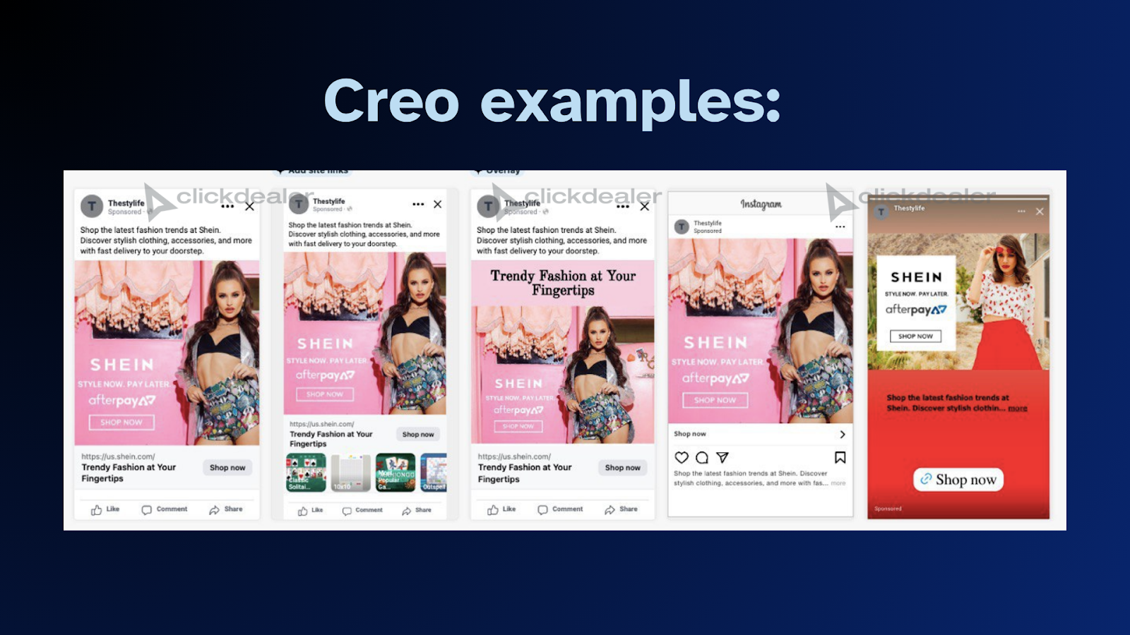 Focusing the message on promotional offers (“20% OFF Today,” “New Collection”) that perform well in fashion.