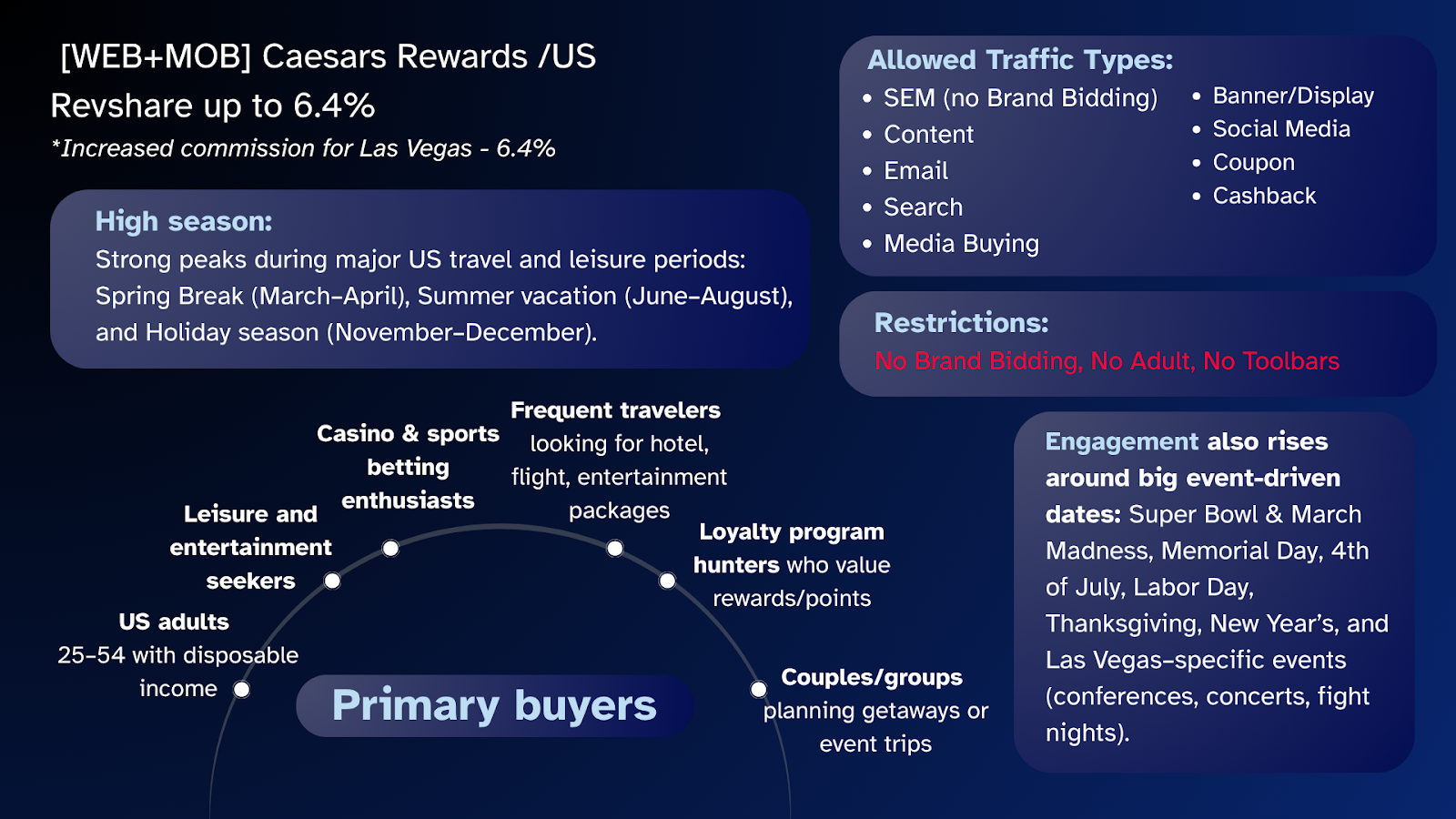 (166540) [WEB+MOB] Caesars Rewards /US - Revshare up to 6.4%
