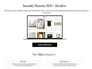 Chirpyest is a social shopping and cashback platform that lets shoppers, influencers, and affiliates earn money simply by shopping and sharing what they love. Partnered with 1,000+ leading retailers across fashion, beauty, home, and lifestyle, Chirpyest makes it easy to earn cash back on personal purchases or commissions when others buy through your links. With a free browser extension, customizable boards, and effortless link sharing, Chirpyest empowers anyone to turn product recommendations into real income — no tech skills or large following required.