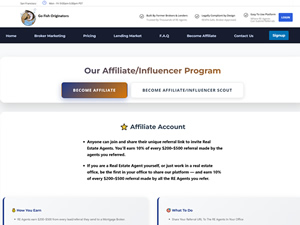 Our company offers one of the highest paying affiliate programs in the U.S., built around a powerful, state-of-the-art platform that connects Real Estate Agents with Mortgage Brokers through a simple referral system. Real Estate Agents earn $200–$500 for each client referral sent to a Mortgage Broker, with many generating 2–20 referrals per month — producing up to $10,000 in ongoing revenue per month every single Real Estate Agent. This continual earning model is what makes our affiliate program such a high paying program. Affiliates who sign up these Real Estate Agents earn 10% of the RE Agent's earnings, creating a reliable and recurring income stream that could actually sustain an entire family. Additionally, our “Affiliate Scout” tier allows anyone to recruit Affiliates — including influencers, home-based entrepreneurs, publishers, and B2B partners — and earn 10% of those affiliates’ total earnings. It’s a high-paying program built for rapid network expansion and long-term profitability.