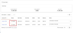 Two Invoice pending Invoice 1369 and Invoice 1325