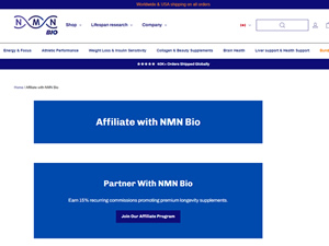 NMN Bio is a premium UK-based supplement company founded by Dr. Elena Seranova, PhD in Neurodegeneration. Our affiliate program offers 15% recurring commission with a generous 365-day cookie window. With an average order value of $120+ and over 30,000 orders shipped worldwide since 2020, affiliates benefit from high conversion rates (4.7%) and strong EPC ($1.80). NMN Bio supplements are trusted by biohackers and wellness enthusiasts, with 80% repeat customers thanks to product quality and retention.