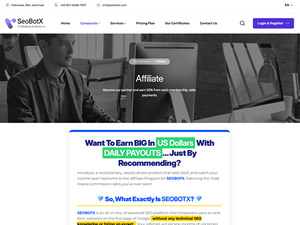 Introduce a revolutionary, results-driven product that sells itself, and watch your income soar! Welcome to the Affiliate Program for SEOBOTX, featuring the most insane commission rates you’ve ever seen!
